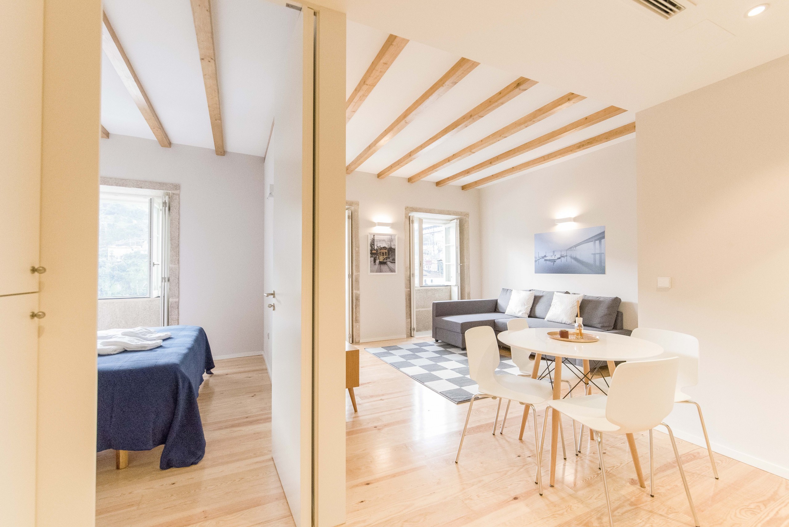 The apartment in Porto has 1 bedroom and has a capacity for 4 people, perfect for families.