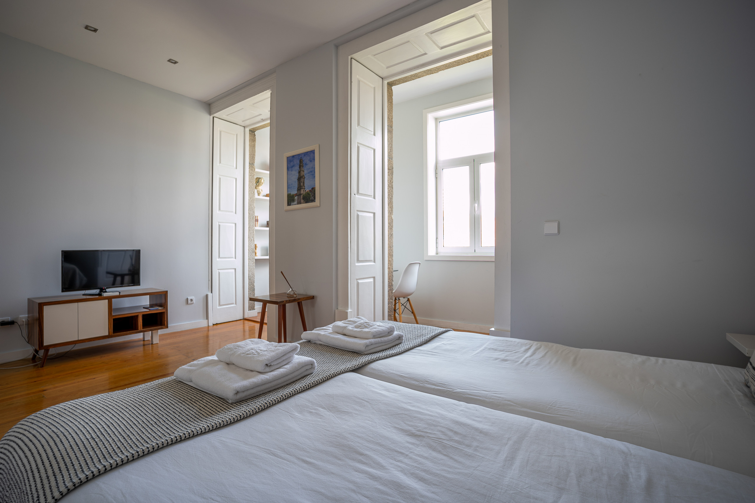 The studio in Porto has capacity for 2 people. The studio is homely, is fully-equiped, and is 35 m². The property is located 0 m from Porto city, 130 m from My Auchan, supermarket, 200 m from formosa bus station, 300 m from Bolhão metro station, 300 m from Cantinho dos Braganças the restaurant, 350 m from Café Santiago the restaurant, 350 m from Casa Guedes the restaurant, 350 m from Campo 24 de agosto metro station, 400 m from Terminal Rodoviário do Campo 24 de Agosto, bus station, 400 m from Pingo doce supermarket, 450 m from My Auchan, Poveiros supermarket, 500 m from Majestic coffee shop, 700 m from Parque das Camélias Terminal rodoviário bus station, 900 m from Trindade metro station, 1 km from Estação de São Bento train station, 1 km from Douro river, 2 km from Hospital santo Antonio hospital, 2 km from FLIXBUS PORTO, Porto bus station, 2 km from Campanhã train station, 7 km from praia dos ingleses sand beach, 7 km from praia dos ingleses rock beach, 7 km from Parque da Cidade lake, 7 km from Praia de Gondarém sand beach, 7 km from Praia da Luz sand beach, 8 km from Praia Homem do Leme sand beach, 9 km from Praia de Matosinhos sand beach, 10 km from Quinta do Fojo golf course, 17 km from Aeroporto Francisco Sã Carneiro airport, 17 km from Aeroporto Francisco Sã Carneiro international airport, 45 km from Termas São Vicente thermal springs, 100 km from Parque Peneda Gerês nature reserve. The house is situated in a charming neighborhood in the center of the city.The accommodation is equipped with the following items: iron, safe, internet (Wi-Fi), hair dryer, central heating, air-conditioned, garage and car park near the building, 1 fan, 1 TV, satellite tv (Languages: Spanish, English, German, Dutch, French), DVD.In the induction open plan kitchen, refrigerator, microwave, oven, freezer, dishes/cutlery, kitchen utensils, coffee machine, toaster, kettle and kitchenware are provided.